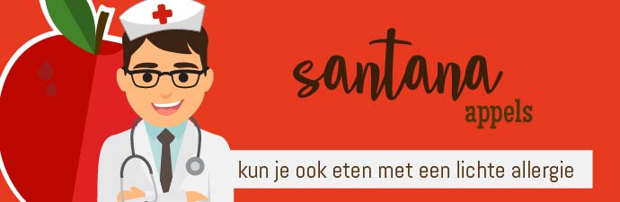 De santana appel die je bij Groentebroer.nl kunt kopen is een heerlijke, knapperige, hyper-allergene appel. Dat betekent dat mensen met een milde appel-allergie zonder klachten deze lekkere, gezonde appel kunnen eten.