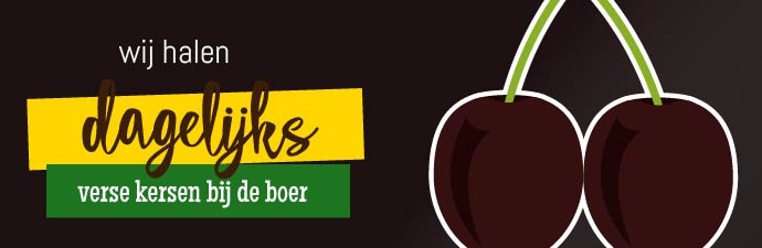 Dit zijn de allerbeste kersen die we in huis hebben! Ons speerpunt 'super snel = super vers' is heel toepasbaar op deze kersen. Ze worden dagelijks vers geplukt. En wij kunnen ze binnen één dag in heel Nederland en Vlaanderen leveren. Want wat vers is moet vers blijven!