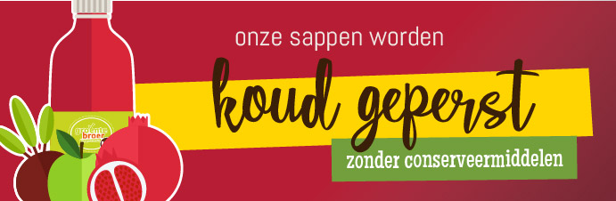 Onze sappen en smoothies zijn gemaakt van 100% verse groenten en fruit. Écht puur dus. We hebben verrassende smaken die echt heel lekker zijn. De sappen en smoothies worden onder hoge druk gebotteld en daardoor zijn ze wel één tot twee weken gekoeld houdbaar, zonder conserveermiddelen.