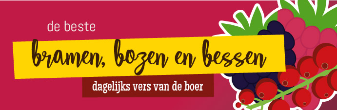 Zachtfruit is een verzamelnaam voor aardbeien, frambozen, bramen en bessen. Je kunt lekker zoete frambozen bij ons kopen, of juist wat zuurdere bramen. We hebben mooie rode bessen om mee te decoreren of om lekker uit het vuistje te eten. We hebben zelfs kruisbessen die we zo lokaal mogelijk inkopen. Kruisbessen worden ook wel stekelbesjes genoemd vanwege hun kleine stekeltjes.